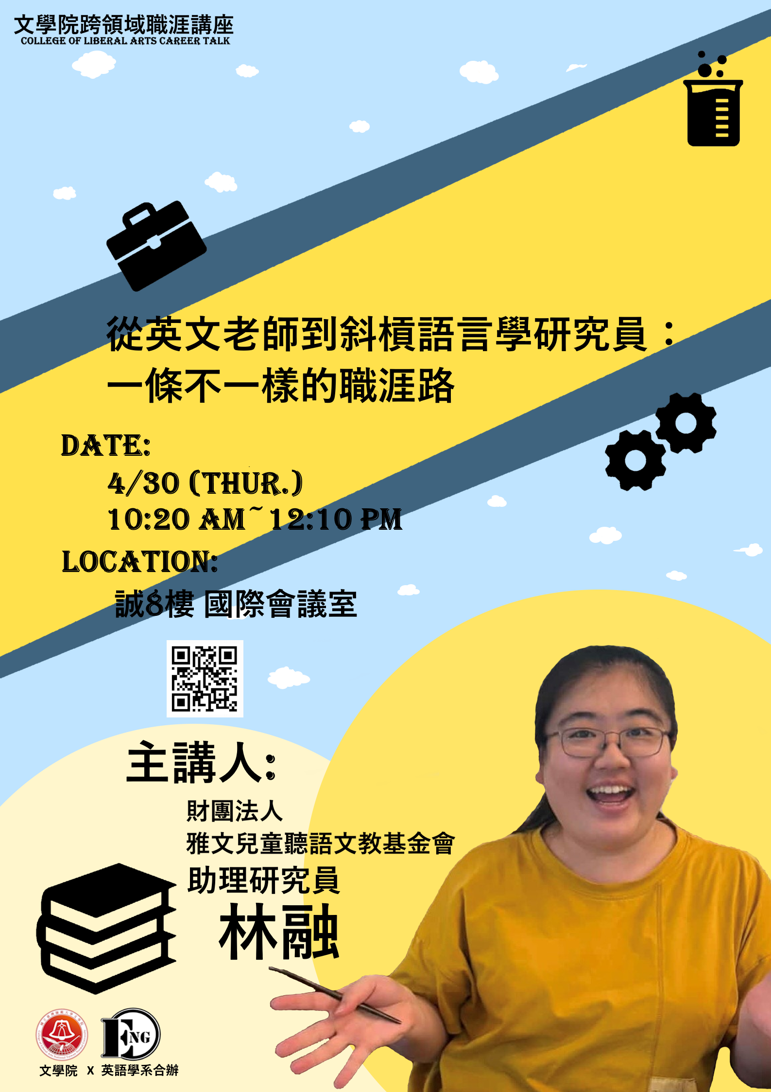 1. 講座資訊:從英文老師到斜槓語言學研究員:一條不一樣的職涯路