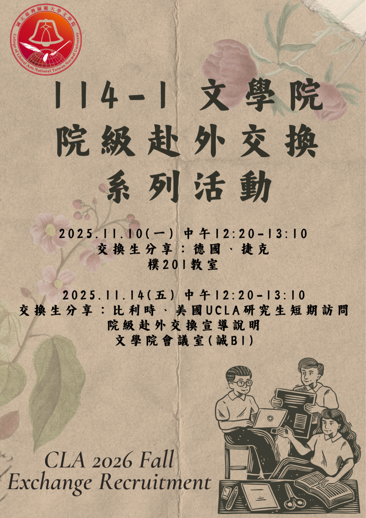 Venue: CLA Conference Room, Cheng Building B1 ( 文學院會議室(誠B1,全球華文寫作中心旁)